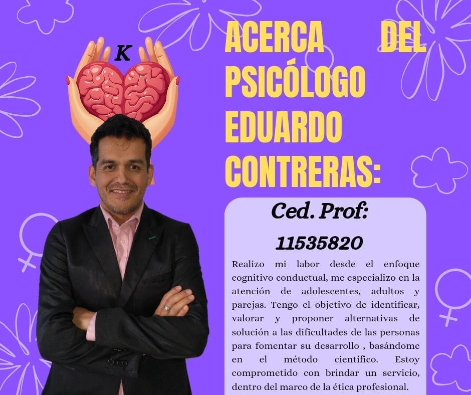 "Soy psicólogo clínico, con 6 años de experiencia, pero antes de serlo también soy un ser humano que ha superado la ansiedad. Ayudo a adolescentes, adultos y parejas a reducir la ansiedad, manejar la ira, sanar el duelo y salir de la depresión con terapia cognitivo-conductual online, práctica y efectiva"